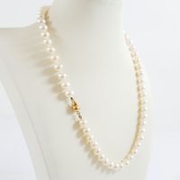 Collier de perles de culture : d'eau douce d'un rang, fermoir en or 750 mil. (longueur : 46 cm environ) (diamètre perles : 7,6 mm environ) (petits chocs sur le fermoir). 31,7 g. brut