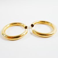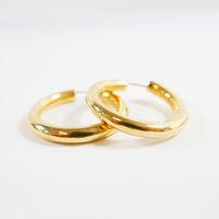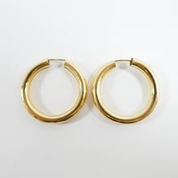 Paire de créoles : en or 750 mil. (diamètre : 2,9 cm environ) (épaisseur : 4 mm environ) (petits chocs, légère déformation). 4,5 g.