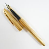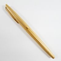 WATERMAN "Ideal", Stylo-plume : en métal doré guilloché, plume en or 750 mil., signé (usures). 20,6 g. brut