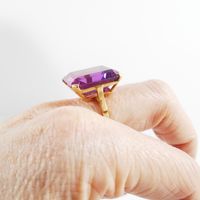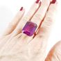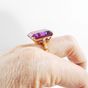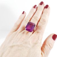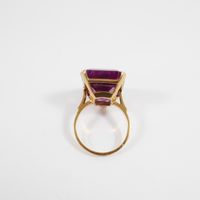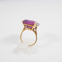 Bague : en or 750 mil. ornée d'une pierre imitation fuschia (dimensions : 20 x 15,9 x 8,15 mm) (TDD : 56,5). 10,6 g. brut.
