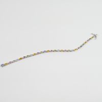 Bracelet ligne : en or gris 750 mil. serti de saphirs ovales et de corindons de couleur alternés de petits diamants taille brillant (longueur : 18 cm), avec double huit de sûreté (manque une pierre). 6,2 g. brut.