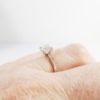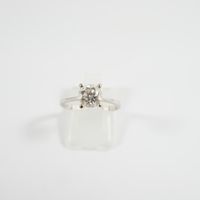 Solitaire : en or gris 750 mil. orné d'un diamant taille brillant de 0,82 ct environ (TDD : 51,5). 1,9 g. brut.