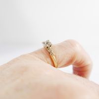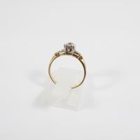 Travail des années 20 : Solitaire en or 585 mil. et platine 850 mil. serti d'un diamant taille ancienne (0,10 ct environ) (TDD : 48,5). 1,9 g. brut.