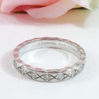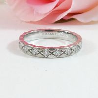 CHANEL. Bague "Coco Crush" : en or gris 750mil. Motif matelassé sertie de diamants brillantés. Signée et numérotée. TDD 52. Poids brut 3,2g. Rayures. La bague "Coco Crush" réinvente le motif matelassé iconique de la Maison en une création joaillière audacieuse et graphique. Ce design en relief est inspiré des célèbres sacs matelassés Chanel.