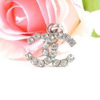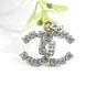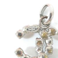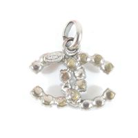 CHANEL. Pendentif siglé "CC" : en métal argenté orné de strass. Collection Automne 2000. Plaque signature. 20 x20 mm environ. Usures.