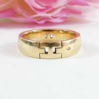 HERMES. Bague ou alliance "Héraklès" en or 750 mil.: Ajourée du "H" de la maison. Signée, numérotée, "S" des Soldes.TDD59. Rayures, salissures. 9,7g.