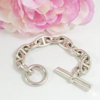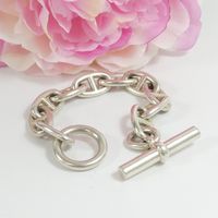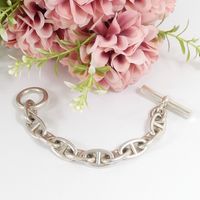 HERMES. Bracelet « Chaîne d'ancre » : en argent 925mil. à 10 maillons, fermoir bâtonnet. Signé. Taille des maillons 22 x 14mm environ. Longueur : 19,5cm environ. 96,6g. Usures.