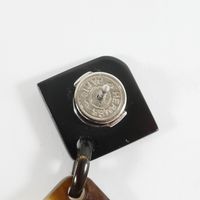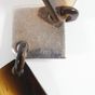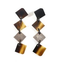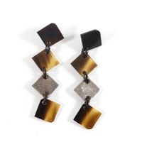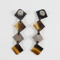 HERMES. Paire de boucles d'oreille : retenant en pampille des motifs carrés articulés en corne, bois laqué et argent 925 mil . Tiges métal. Signés sur les systèmes. Hauteur 7.5 cm. Poids brut : 13,8g. Rayures.