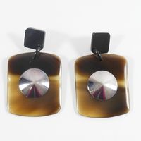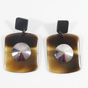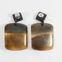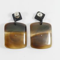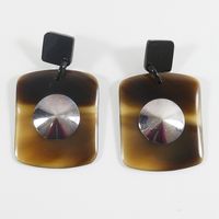 HERMES. Paire de boucles d'oreilles : retenant un pendant rectangulaire en corne orné d'un motif cylindrique en argent 800mil. Tiges métal. Signées sur les systèmes. Poids brut :19,5g. E) Art. L833-2 du Code de Commerce.
