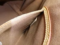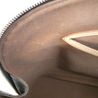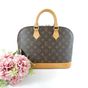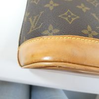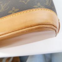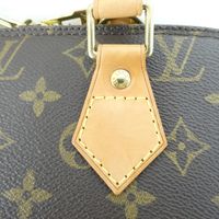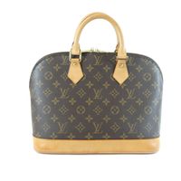 Louis VUITTON, année 2003. Sac "Alma PM" : 31cm, en toile Monogram et cuir naturel, fermeture éclair à double curseur, double poignée. Intérieur en toile marron. Numéroté. Pas de anse bandoulière amovible Garniture en métal doré. Taches intérieur et extérieur. Ht 23 x Larg. 31 x Prof.16cm. Ce sac Alma BB s'inspire d'un modèle Art déco datant de 1934. Ses détails emblématiques, tels que le cadenas et les clés dorés, les deux poignées Toron cousues à la main et la cloche-clés en cuir, lui prêtent une élégance intemporelle. Son nom inspiré du Pont de l'Alma. Symbole d'élégance parisienne.