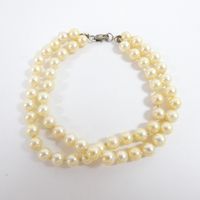 Bracelet de perles de culture : de deux rangs, fermoir en or gris 585 mil. (longueur : 19 cm environ) (diamètre perles : 5,7 mm environ). 15,8 g. brut