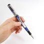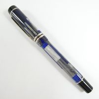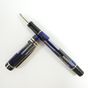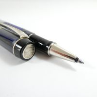 PARKER "Duofold", Roller : en métal argenté et résine bleue, grise et noire, signé (longueur : 132 mm environ).