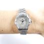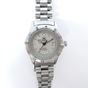 TAG HEUER "2000 Series Professional", réf. 962.008 : Bracelet-montre de dame en acier, boîtier rond, lunette tournante graduée, cadran gris moucheté, index bâton et point peints luminescents, guichet dateur à 3H, mouvement à quartz, bracelet et boucle déployante signée en acier, signé (diamètre : 28 mm environ) (longueur : 16 cm environ) (manque point luminescent sur la lunette, usures, légères rayures au verre).