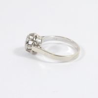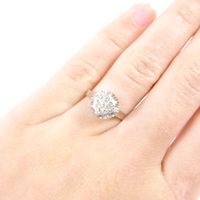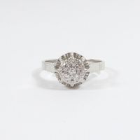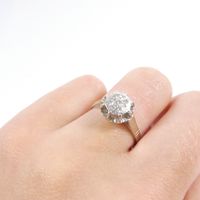 Bague : en or gris 750 mil., et platine 850 mil., à chaton corolle, pavé de petit diamant taille brillant. (TDD : 53). Poids brut : 3,7g