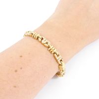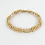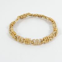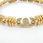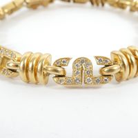 Bracelet : en or jaune 750 mil., à maille articulé à décor de motifs géométriques sertis de diamants taille brillant (0,01 carats environ), et godrons. Fermoir cliquet et huit de sécurité. (Tour de poignet : 18,5cm environ). Poids brut : 34,6g.