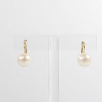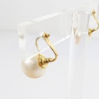 Paire de dormeuses : en or 750 mil. serties chacune d'une perle de culture de 10,6 mm environ (légères usures). 4,6 g. brut.