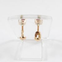 Paire de puces d'oreille : en or jaune 585 mil., serti de pierres rouges d'imitation. Poids brut : 1,3g