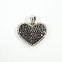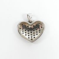 Pendentif cœur : en argent 925 mil. pavé de diamants taille brillant noirs et blanc (dimensions : 2 x 2 cm). 2,7 g. brut.
