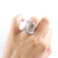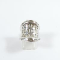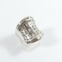 Bague bandeau : en or gris 750 mil., pavée de diamants taille baguette. (TDD : 54). Poids brut : 20,7g