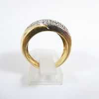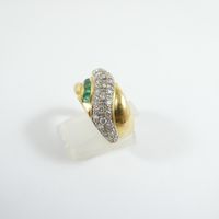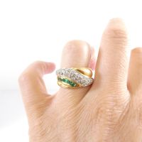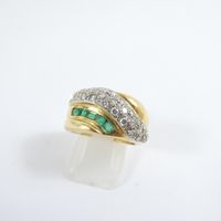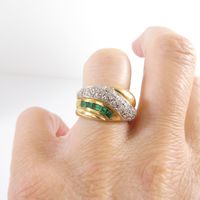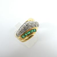 Bague croisée : 2 ors 750 mil., sertie d'une ligne de diamants taille 8/8 et d'une ligne d'émeraudes calibrées. (TDD : 53). Poids brut : 7,6g