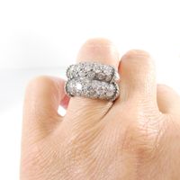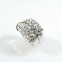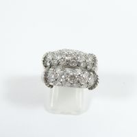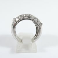 Bague double jonc : en or gris 750 mil., pavée de diamants taille brillant (0,15 - 0,10 carats environ chacun) (TDD : 53). Poids brut : 12,9g