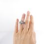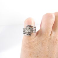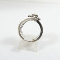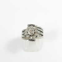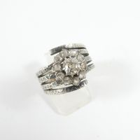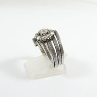 Bague fleur : en argent 800 mil., à quatre filins martelés, ornée d'un diamant taille ancienne dans un entourage de diamants taille rose. (TDD : 52). Poids brut : 9,9g