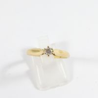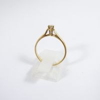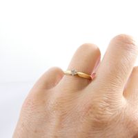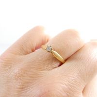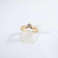 Bague solitaire : en or jaune 750 mil., centrée d'un diamant taille brillant (0,07 carats environ). (TDD: 56). Poids brut : 2,7g