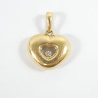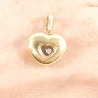 CHOPARD, "Happy Diamonds" : pendentif en or jaune 750 mil., renfermant un petit diamant mobile sous verre. (Dim. : 1,5 x 1,6cm). Signé. Poids brut : 6g