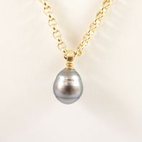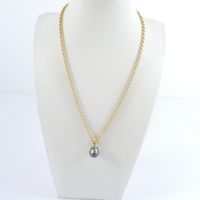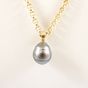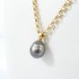 Collier : en or jaune 750 mil., à maille jaseron, retenant un pendentif en or jaune 750 mil., orné d'une perle grise de culture. (Diam.: 16 mm environ). Poids brut : 10,4g
