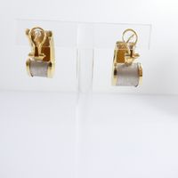 Paire de boucles d'oreille : 2 ors 750 mil., en partie brossé et amati. (Long. : 2,5cm). Poids : 6,3g