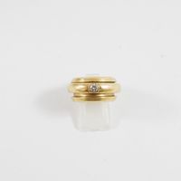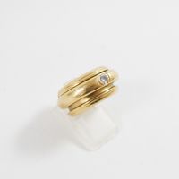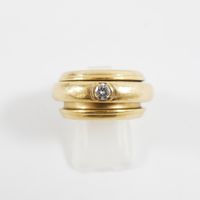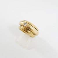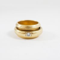Bague bandeau en or 750 mil à anneau tournant rehaussé d'un diamant (environ 0,15 ct) (Larg bague : 1,1 cm ; TDD : 51,5). 17 g brut.