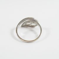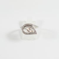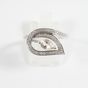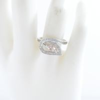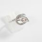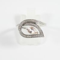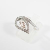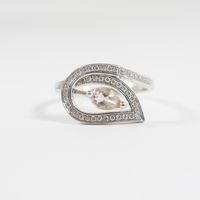 Bague en or gris 750 mil figurant une fleur ajourée centrée d'une pierre fine taille poire rehaussé d'une ligne de diamants (Larg : 1,2 cm ; TDD : 56). 3,5 g brut.