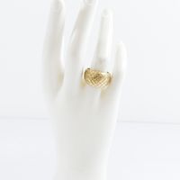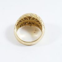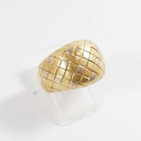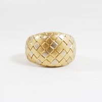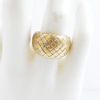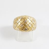 Bague jonc en or 750 mil ornée d'un décor de passementerie (Larg : 1,4 cm ; TDD : 54,5). 8 g.