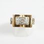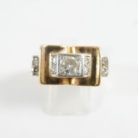 Bague pont en or 750 mil et platine 850 mil centrée d'un diamant TA accidenté, épaulé de diamants 8/8 (Larg : 1,1 cm environ ; TDD : 48). 9,9 g brut.