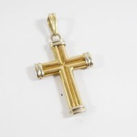 Croix godronnée en ors de couleur 750 mil (Dim hors bélière : 3,9 x 2,5 cm). 7,2 g.