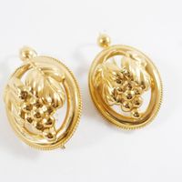 Paire de boucles d'oreilles ovale ajourées en or 750 mil à décor d'une grappe de raisins (Dim : 2,9 x 2,4 cm environ). 4,6 g.