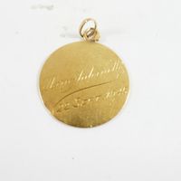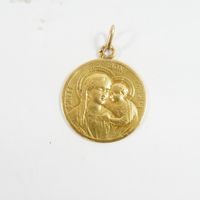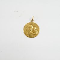 Pendentif rond "Vierge Marie" en or 750 mil (Chiffré, usures) (Diam : 2 cm environ). 2,9 g.