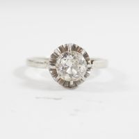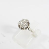 Solitaire en or gris 750 mil et platine 850 mil orné d'un diamant TA (environ 0,80 ct) (TDD : 54). 3,2 g brut.