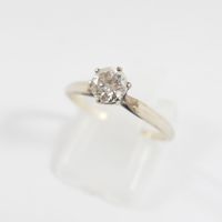Solitaire en or gris 750 mil orné d'un diamant (environ 0,55 ct) (TDD : 55). 2,2 g brut.